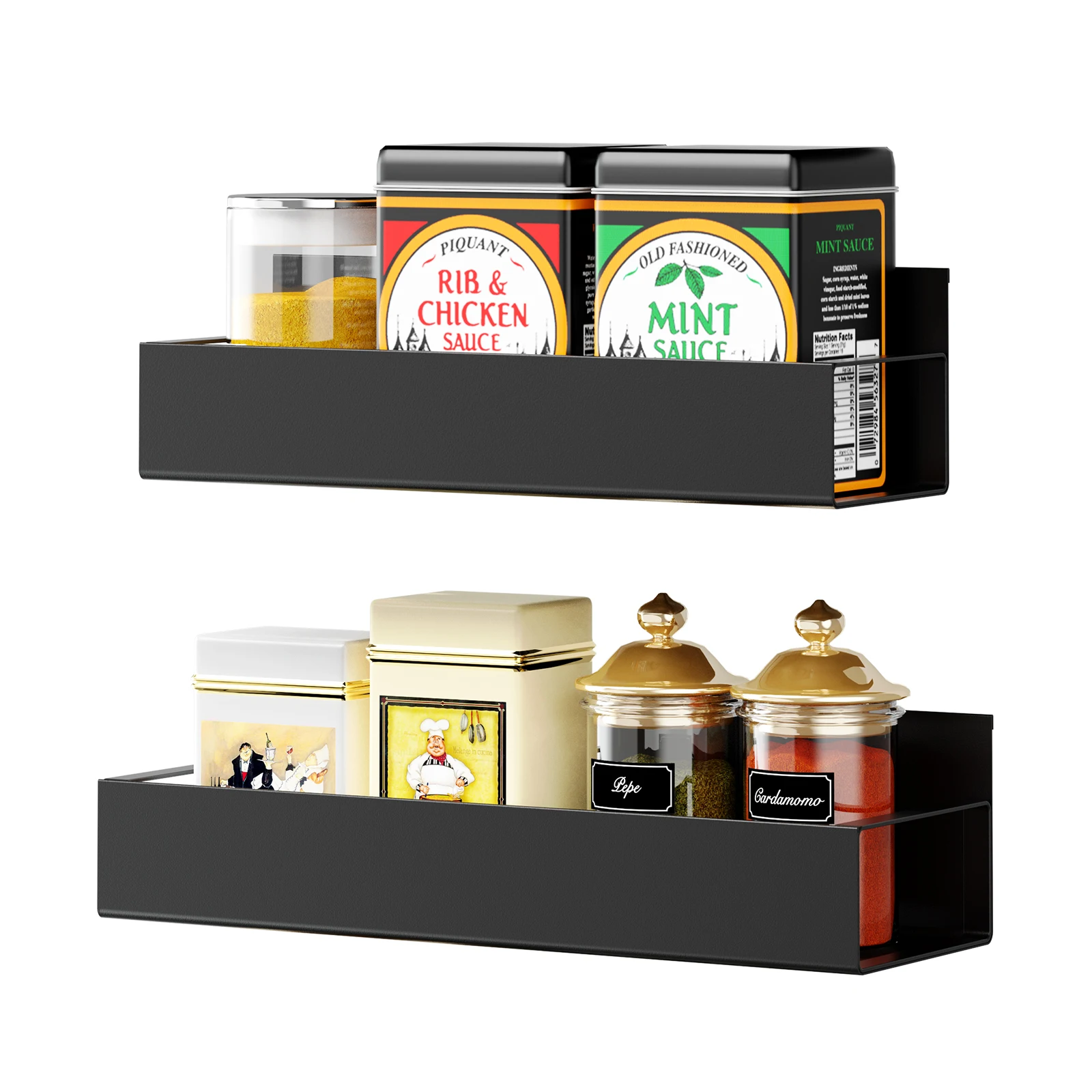 Magnetic Fridge Shelf Spice Seasoning Storage Rack Black Iron Kitchen Organizer Accessory Space Saving For Cabinet MicrowaveOven