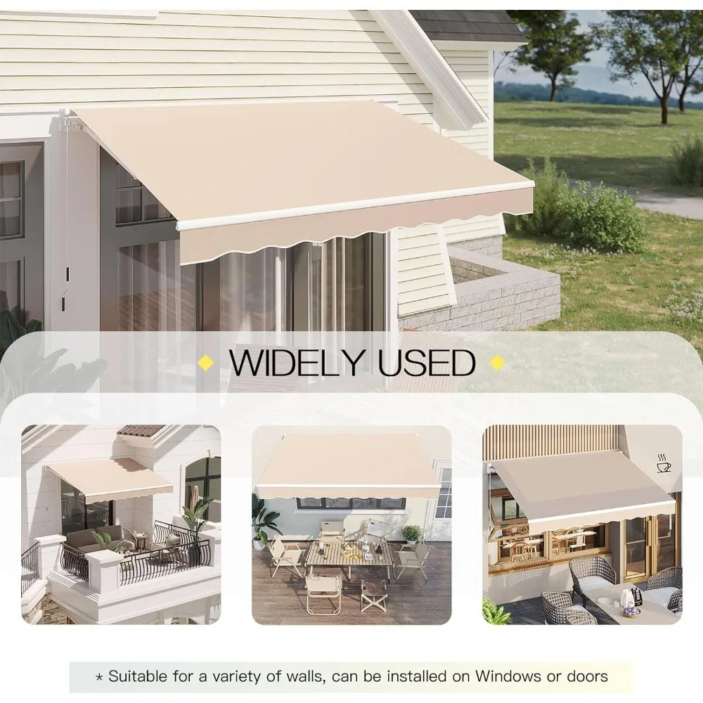 Retractable Awning, 13'x8' Manual Awnings for Patio Sun Shade Shelter, Water-Resistant Polyester Cover Outdoor Door Window